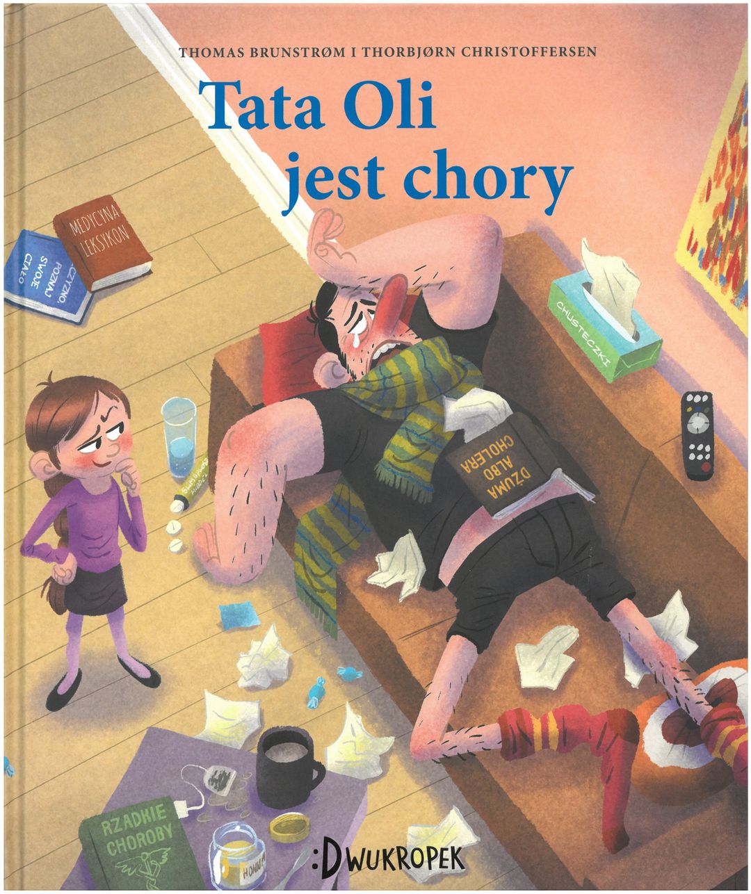 Tata Oli zachorował. Dopadła go męska grypa, która jest najgorszą grypą na świecie. Ola opiekuje się tatą i spełnia wszystkie jego zachcianki. Przynosi mu koc, przygotowuje posiłki, kupuje smakołyki, czyta książki… Ale tata czuje się coraz gorzej i spisuje testament. [wydawca]